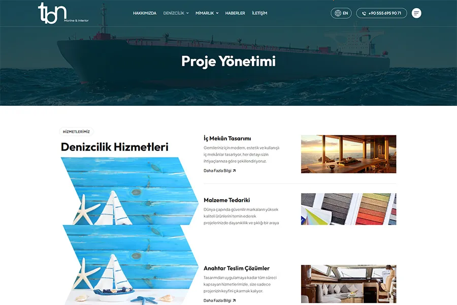 TBN Marine Interior, sunduğumuz profesyonel hizmetlerle dijital dünyada güçlü bir marka varlığı kazandı. Web sitesi, firmanın denizcilik sektöründeki iç mekan çözümlerini çarpıcı bir şekilde tanıtan ve global müşterilerle iletişimi güçlendiren bir platform haline geldi. Sosyal medya entegrasyonlarıyla marka bilinirliği artırıldı ve sektördeki rekabet avantajı desteklendi.